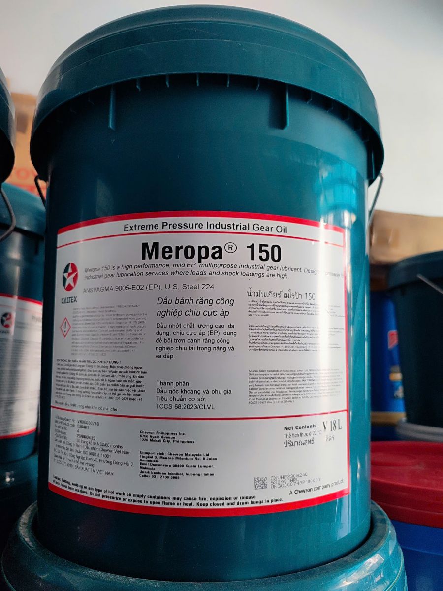 Caltex Meropa là dầu bôi trơn bánh răng công nghiệp hiệu năng cao, chịu cực áp (EP) trung bình, chứa hệ phụ gia sunfua-phốtpho có tính năng chống ô xy hóa và chống rỉ, chống ăn mòn và tác nhân vô hoạt hóa kim loại.